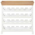 This high-quality wine rack in brown and white will suit your living environment, and you can place it in the living room, in the dining room, or in the hall. This open wine cabinet gives you ample storage space for wine bottles. The four shelves have the capacity of holding 24 bottles of wine. The top tray can be used as a storage area for glassware, openers and other items. This simple yet stylish wine organiser is undoubtedly a must-have for all wine lovers.