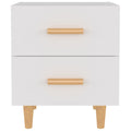 Featuring a scandinavian charm#this bed cabinet is meant to upgrade your interior to the next level. Premium material: The engineered wood is of exceptional quality with smooth surface and also features strength#stability and resistance to moisture.Sturdy legs: The legs are made of solid eucalyptus wood. Solid eucalyptus wood is a beautiful natural material. Eucalyptus wood is extremely dense and water repellent. The material is well-known for its rich reddish-brown colour.Ample storage space: The bed cabinet has two drawers with wooden handles. The spacious drawers allow you to keep your things organised.Multifunctional cabinet: The sturdy top is ideal for displaying decorative objects#photo frames#or potted plants. It can also be used as a side cabinet#end table#etc.