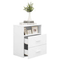 Bring a modern style to your interior with these bed cabinets. The bedside cabinet is stable and sturdy. Additionally, the nightstand is equipped with two drawers and one shelf, providing ample storage space for keeping your essentials well organised and within reach. It is easy to clean with a damp cloth.