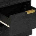 - Material: Solid mango wood with sandblasted in black finish, engineered wood