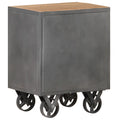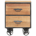 This industrial-style wooden bedside cabinet makes a great addition to your interior. It can also be used as a nightstand or side table. The nightstand is made of solid reclaimed wood, sourced from joists, floors and support beams from old demolished buildings. Additionally, it is capable to consist of different types of wood like teak, hardwood, tropical wood, mango wood etc. This means the reclaimed wood retains the characteristics of these different types of wood. Reclaimed wood is already aged, weathered and dried. Hence, they don't shrink or bend. The steel frame also adds extra stability. The side cabinet has a sturdy top to place a bedside lamp, alarm clock or anything else you might need. This bedside table has two drawers, providing ample space for keeping small items organised and within reach. It also features black wheels for great flexibility. Important note: Colours and grains vary from piece to piece, making each piece unique. The delivery is random, ensuring the exclusivity and individuality of your product.
