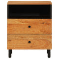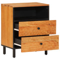 This bedside cabinet with an elegant design makes a timeless addition to your interior decor. Solid acacia wood: Solid acacia wood is a beautiful natural material. Acacia wood is a tropical hardwood, which is dense, sturdy, and durable.Ample storage space: The bedside table is designed with 2 drawers and 1 compartment to keep things organised and within easy reach.Stable top: The top of the side cabinet is perfect for displaying your decorative items, picture frames and potted plants.Sturdy legs: The iron legs add the bedroom furniture's sturdiness and stability. Warning:To prevent it from tipping over, this product must be used with the provided wall attachment device.