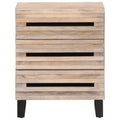 This wooden bedside cabinet will make a decorative as well as practical addition to your decor. Solid mango wood: Solid mango wood is a strong, tropical hardwood that makes sturdy furniture. Its beautiful wood grains make every piece of furniture slightly different from the next.Ample storage space: The nightstand features 3 drawers and provides ample storage space for you to store and display your books, magazines, and decorative items, while enhancing your living space.Stable and durable legs: This cabinet is supported by sturdy legs, ensuring stability, safety, and firmness. Warning:To prevent it from tipping over, this product must be used with the provided wall attachment device.