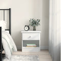 With a stylish design, this wooden bedside cabinet fits easily into your bedroom or living room and adds a timeless charm to your interior. Solid pine wood: Solid pine wood is a beautiful natural material. Pine wood has a straight grain, and the knots give the material its signature, rustic look. Made of solid pine wood, the bedside table is durable and sturdy.Ample storage space: The bedroom furniture features a convenient drawer and a compartment, helping keep your essentials close at hand.Easy to maintain: The bed side table is easy to clean with a damp cloth and requires less maintenance.Wooden knob: The bedside drawer comes with a wooden knob that makes it easy to open and close the bed table while also adding to extra beauty.Untreated surface: As the nightstand is crafted from solid pine wood with no finish, you can keep its natural colour, but also can paint or lacquer it as you prefer.