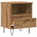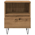 This trendy bedside cabinet, featuring a sleek and classic design, is meant to upgrade your interior to the next level. Durable material: The engineered wood is of exceptional quality with smooth surface and also features strength, stability and resistance to moisture. Made of engineered wood, the bedside table is easy to clean with a damp cloth.Ample storage space: The bed side table has a drawer and a compartment, providing ample space to keep your magazines, books, remote controls and other small items well organised and within reach.Sturdy top: The sturdy top of the nightstand is ideal for displaying decorative objects, photo frames and potted plants.Metal legs: The metal legs add a modern and calm style to your interior while ensuring stability. Warning:To prevent it being overturned, this product must be used with the provided wall attachment device.