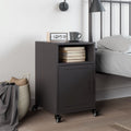This bedside cabinet with a stylish design makes a timeless addition to your interior decor. Stable material: The bedside cabinet's frame is made of cold-rolled steel. Cold-rolled steel is a kind of low-carbon steel produced by a "cold rolling" method and processed at near normal room temperatures. Cold-rolled steel has a smoother surface, greater strength, and higher precision.Ample storage space: This cabinet offers handy storage space for keeping your magazines, books, remote controls and other small items well-organised and within reach.Easy to maintain: The table is easy to clean with a damp cloth and requires less maintenance.Easy to move: This end table has 4 wheels, making it move flexibly and park stably at any time.Practical handle: The bed cabinet comes with a handle that makes it easy to open and close the cabinet while also adding to extra beauty.