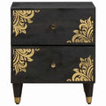 This Modern Bedside Cabinet offers a stylish and functional addition to your bedroom. Sleek and minimalistic, its modern design seamlessly fits into any interior while providing practical storage solutions. With its smooth façade, clean lines, and vibrant brass handles, this cabinet serves both aesthetic appeal and storage utility. It's an ideal choice for those who value a blend of sophistication and functionality, making it the perfect companion for your sleeping quarters. Solid Mango Wood Build: The Modern Bedside Cabinet is crafted from high-quality solid mango wood, offering durability and a robust structure. Known for its rich grain patterns, mango wood provides an elegant visual appeal that enhances the overall appearance of the furniture. It's an ideal choice for those seeking a and visually appealing wooden accessory for their bedroom. Hand-Painted Front Design: The cabinet features a hand-painted front, giving it a unique personality and charm. This artisanal touch adds a distinctive character to your interior decor, ensuring the cabinet stands out as a centerpiece furniture piece. It's perfect for adding a touch of creativity and warmth to your living space. Brass Knobs and Tapered Legs: Accentuated with sleek brass knobs, the cabinet's hardware complements its sophisticated look. Tapered legs crafted from brass provide a sturdy foundation and enhance the modern aesthetic, ensuring stability and functionality. These elements contribute to the table’s overall strength and style. Practical Storage Space: The design includes adequate storage for personal items you may need handy by your bedside. Whether it’s books, electronics, or accessories, the space is optimized to offer convenient access without compromising on style, maintaining a clutter-free bedroom best suited for nightstand needs. Easy Care &Maintenance: Keeping the cabinet in its best form is effortless—simply wipe with a dry cloth regularly to maintain its shine and integrity. Designed with ease in mind, this routine ensures the piece remains a lasting investment in your home décor.