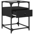 With a stylish design, this bedside cabinet fits easily into your bedroom or living room and adds a timeless charm to your interior. Durable material: The engineered wood is of exceptional quality with a smooth surface and features strength, stability and resistance to moisture. Robust and stable frame: Engineered Wood is an exceptionally hard and strong material. It offers sturdiness and stability.Glass top: The top of the side table provides a visible and ample surface to place snacks, drinks, vases, fruit bowls, or other decorative items.Ample storage space: The bedside cabinet features a shelf, helping keep your essentials close at hand.Easy to clean: This bedside cabinet is moisture-resistant and easy to clean to keep it looking new every day. Warning:To prevent it from tipping over, this product must be used with the provided wall attachment device.