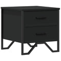 This trendy bedside cabinet, featuring a sleek and classic design, is meant to upgrade your interior to the next level. Long-lasting material: The engineered wood is of exceptional quality with a smooth surface and also features strength, stability, and resistance to moisture.Ample storage space: This bedside table has two drawers to provide storage space to keep your magazines, books, remote controls, and other small items within reach.Sturdy top: The sturdy top of the nightstand is ideal for displaying decorative objects, photo frames and potted plants.Metal legs: The metal legs add a modern and calm style to your interior while ensuring stability.