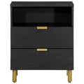 This trendy bedside cabinet, featuring a sleek and classic design, is meant to upgrade your interior to the next level. Durable material: The engineered wood is of exceptional quality with smooth surface and also features strength, stability and resistance to moisture. Made of engineered wood, the bedside table is easy to clean with a damp cloth.Ample storage space: The bed side table has 2 drawers, providing ample space to keep your magazines, books, remote controls and other small items well organised and within reach.Sturdy top: The sturdy top of the nightstand is ideal for displaying decorative objects, photo frames and potted plants. Warning:To prevent it from tipping over, this product must be used with the provided wall attachment device.