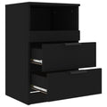 This bedside cabinet with an elegant design makes a timeless addition to your interior decor. Premium material: The engineered wood is of exceptional quality with smooth surface and also features strength, stability and resistance to moisture. Made of engineered wood, the nightstand is easy to clean with a damp cloth.Ample storage space: Equipped with 2 drawers and 1 compartment, this bedside table offers handy storage space for keeping your magazines, books, remote controls and other small items well organised and within reach.Stable top: The stable top can be used to place decorative items like photo frames and potted plants. Warning:In order to prevent overturning, this product must be used with the wall attachment device provided.