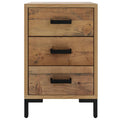 Add a vintage touch to your room with the bedside cabinet! It makes a practical and decorative addition to your home. Solid pinewood: The cabinet is crafted from solid pinewood, which has some rough edges, defects and scratches, giving it a vintage industrial look.Ample storage space: Equipped with drawers, the bedside table offers ample storage space for keeping various daily essentials well organised and within easy reach.Sturdy top: The side cabinet has a sturdy top, which is perfect for placing your cups, books and some decorative items.Metal feet: The metal feet of this bedroom furniture ensure sturdiness and stability. Warning:In order to prevent overturning, this product must be used with the wall attachment device provided. Note:Each product comes with an assembly manual in the box for easy assembly.
