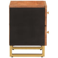 This bedside cabinet with an elegant design makes a timeless addition to your interior decor. Solid mango wood: Solid mango wood is a strong, tropical hardwood that makes sturdy furniture. Its beautiful wood grains make every piece of furniture slightly different from the next. Made of solid mango wood, the cabinet is durable and stable.Ample storage space: The bedside table is designed with 2 drawers to keep things organised and within easy reach.Stable top: The top of the side cabinet is perfect for displaying your decorative items, picture frames and potted plants.Sturdy legs: The iron legs add the bedroom furniture's sturdiness and stability.