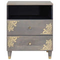 The Modern Bedside Cabinet is a must-have in any bedroom, blending style with practicality. Its sleek rectangular shape and elegant lines suit any modern decor. The warm wood tones and contemporary design make it a lovely focus point while keeping your essentials handy. Its compact size fits nicely beside your bed, perfect for a lamp, an alarm clock, or that book you’ve been itching to read. Materials: Crafted from tough solid mango wood with a natural look and flat matte finish. It’s built to last and resist wear and tear. Plus, engineered wood adds stability without looking bulky. Included Components: This Modern Bedside Cabinet is all about functionality. It features a classic drawer with shiny golden knobs for easy access and a spacious area for your bits and bobs. The shelf underneath is great for keeping your favourite books or gadgets close by, making the most of your space. Features / Function / Design: The hand-painted front is a real showstopper, showcasing creativity and craftsmanship. It’s durable, compact, and stays stylish. The sturdy legs made from solid mango wood ensure it’s stable and visually striking. Recommended Uses: Ideal for indoor use, this bedside cabinet shines in bedrooms where style and space-saving are key. Whether in guest rooms or master suites, it works great for keeping things like your nightly water close at hand and adding to your decor. Care & Maintenance: Keeping this cabinet in good nick is easy. Just wipe it down with a dry cloth to avoid dust. Stay clear of excessive moisture or harsh cleaners to keep the matte finish and hand-painted details looking fresh, ensuring it stays a beloved part of your bedroom for years.