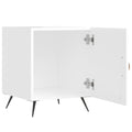 Introduce an air of modern charm to your interior with this bedside cabinet! Durable material: The engineered wood is of exceptional quality with smooth surface and also features strength, stability and resistance to moisture. Spacious storage space: The bedside cabinet has a compartment, providing spacious storage space to keep your books, multimedia appliances and other items within reach.Displaying function: You can also place your favourite photos, decorations or flowers on top of the side cabinet to enrich your life. Metal feet: The metal feet add a calm style to your interior while ensuring stability.Practical door: Keep your essentials free from dust by hiding them behind the door. Warning: To prevent it being overturned, this product must be used with the provided wall attachment device.