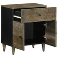 This bedside cabinet with an elegant design makes a timeless addition to your interior decor. Robust and stable material: Solid mango wood, a robust tropical hardwood, is highly favoured for furniture making for its exceptional durability and strength. Its beautiful wood grains make every piece of furniture slightly different from the next.Ample storage space: The bedside table provides ample storage space for magazines, books, glasses, and other bedtime essentials, keeping them organised and within reach.Versatile use: This nightstand is not only for the bedroom, it can also be used as a side table in the living room, or extra storage space in any room, seamlessly adapting to your needs.Wooden legs: The bed cabinet is supported by sturdy wooden legs, ensuring stability, safety, and firmness. Good to know:Each item is unique with variations in colours and grains. The delivery is random, ensuring the exclusivity and individuality of your product. Warning:To prevent it from tipping over, this product must be used with the provided wall attachment device.