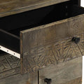 - Material: Mango light grey finish with carving front, engineered wood, metal