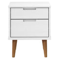 This trendy wooden bedside cabinet, featuring a Scandinavian charm, is designed to upgrade your interior to the next level. Solid pine wood: Solid pine wood is a beautiful natural material. Pine wood has a straight grain, and the knots give the material its signature, rustic look.UV varnish: UV varnish is a special type of varnish that's finished using an ultraviolet drying machine. It creates a more vivid, more luxurious and more tactile finish when compared to non-UV varnishes.Stable frame: The wooden frame ensures sturdiness and stability.Ample storage space: The nightstand has 2 drawers. The spacious drawers allow you to keep your things organised.Sturdy top: The sturdy top is ideal for displaying decorative objects, photo frames and potted plants. Note:Each product comes with an assembly manual in the box for easy assembly.