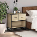 This bedside cabinet with an elegant design makes a timeless addition to your interior decor. Stable and durable material: Engineered wood is a durable and stable material with a smooth surface that is resistant to moisture, warping, and splitting, making it a reliable choice for a variety of projects.Stable and long-lasting frame: Metal material is strong, stable, and durable, making it an ideal choice for a wide range of applications, from furniture manufacturing to construction.Ample storage space: The bedside nightstand provides ample storage space for magazines, books, glasses, and other bedtime essentials, keeping them organised and within reach.Sturdy top: The sturdy top of the bedside stand is perfect for placing table lamps, alarm clocks, books, picture frames, small potted plants, decorations or other essentials.Easy to maintain: Thanks to its smooth surface, the bedside table is easy to clean with a damp cloth and requires less maintenance. Warning:To prevent it from tipping over, this product must be used with the provided wall attachment device.