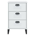 With a stylish design, this bedside cabinet fits easily into your bedroom or living room and adds an industrial charm to your interior. Durable material: The engineered wood is of exceptional quality with smooth surface and also features strength, stability and resistance to moisture.Ample storage space: The nightstand offers ample storage space to keep your essentials well-organised and close at hand.Easy to maintain: The end table is easy to clean with a damp cloth and requires less maintenance.Practical handle: The bed cabinet comes with handles that make it easy to open and close the cabinet while adding extra beauty. Warning:To prevent it from tipping over, this product must be used with the provided wall attachment device.