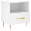 Introduce an air of modern charm to your interior with this bedside cabinet! Durable material: The engineered wood is of exceptional quality with smooth surface and also features strength, stability and resistance to moisture. Spacious storage space: The bedside cabinet has a compartment and a drawer, providing spacious storage space to keep your books, multimedia appliances and other items within reach. Displaying function: You can also place your favourite photos, decorations or flowers on top of the side cabinet to enrich your life. Metal feet: The metal feet add a calm style to your interior while ensuring stability.