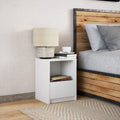 With a stylish design, this bedside cabinet fits easily into your bedroom or living room and adds a timeless charm to your interior. Long-lasting material: The engineered wood is of exceptional quality with a smooth surface and also features strength, stability, and resistance to moisture.Ample storage space: The bedside cabinet with drawer offers ample storage space for keeping your various daily essentials well organised and within easy reach.RGB LED lights for a pleasant ambience: This end table features LED lights that can be easily adjusted to create a personalised light show. You can customise the modes, colours, and brightness to enhance the ambience of your interior space.Easy to maintain: Thanks to its smooth surface, the bed cabinet is easy to clean with a damp cloth and requires less maintenance. Warning:To prevent it from tipping over, this product must be used with the provided wall attachment device.Good to know:The product has a USB connector that requires a certified 5V USB power source (not included).