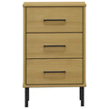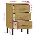 Add an industrial touch to your room with the bedside cabinet! It makes a practical and decorative addition to your home. Solid pine wood: The cabinet is crafted from solid pine wood, which is a beautiful natural material. Pine wood has a straight grain, and the knots give the material its signature, rustic look.Ample storage space: Equipped with 3 drawers, the bedside table offers ample storage space for keeping various daily essentials well organised and within easy reach.Sturdy top: The side cabinet has a sturdy top, which is perfect for placing your cups, books and some decorative items.Metal feet: The metal feet of this bedroom furniture ensure sturdiness and stability. Warning:In order to prevent overturning, this product must be used with the wall attachment device provided. Note:Each product comes with an assembly manual in the box for easy assembly.
