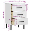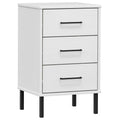 Add an industrial touch to your room with the bedside cabinet! It makes a practical and decorative addition to your home. Solid pine wood: The cabinet is crafted from solid pine wood, which is a beautiful natural material. Pine wood has a straight grain, and the knots give the material its signature, rustic look.Ample storage space: Equipped with 3 drawers, the bedside table offers ample storage space for keeping various daily essentials well organised and within easy reach.Sturdy top: The side cabinet has a sturdy top, which is perfect for placing your cups, books and some decorative items.Metal feet: The metal feet of this bedroom furniture ensure sturdiness and stability. Warning:In order to prevent overturning, this product must be used with the wall attachment device provided. Note:Each product comes with an assembly manual in the box for easy assembly.