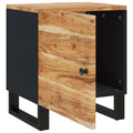 Introduce an air of industrial charm to your interior with these wooden bedside cabinets! Variations in the grain and colour give these nightstands a unique character. Solid acacia wood: Solid acacia wood is a beautiful natural material. Acacia wood is a tropical hardwood, which is dense, sturdy, and durable.Ample storage: The cabinet offers ample storage space for keeping your magazines, books, DVDs, multimedia devices, and other decorative items well organised and within reach.Sturdy top: The sturdy top of the bedside table is ideal for displaying decorative objects, photo frames, or potted plants.Flexible door installation: The door of the compartment can be installed on the left or right according to your personal habits and convenience.Industrial base: The black iron legs add an industrial look and stability to the side cabinet. Note:The colours and grains vary from piece to piece, making each piece unique. The delivery is random, ensuring the exclusivity and individuality of your product.Each product comes with an assembly manual in the box for easy assembly.