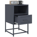These bedside cabinets with an industrial style make a timeless addition to your interior decor. Robust and stable frame: Steel is strong, stable, and durable, making it an ideal choice for a wide range of applications, from furniture manufacturing to construction.Ample storage space: The bedside table provides ample storage space for keeping your various daily essentials well-organised and within easy reach.Easy to clean: The steel nightstand is moisture-resistant and easy to clean with a damp cloth.Multifunctional design: This cabinet is ideal to serve as a nightstand next to your bed, a side table next to the couch in the living room, or as an additional cabinet in the study.Displaying function: You can also place your favourite photos, decorations or flowers on top of the bedside table to enrich your life. Warning:To prevent it from tipping over, this product must be used with the provided wall attachment device.