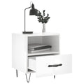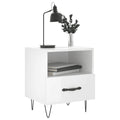 Introduce an air of modern charm to your interior with these bedside cabinets! Durable material: The engineered wood is of exceptional quality with smooth surface and also features strength, stability and resistance to moisture. Spacious storage space: The bedside cabinet has a compartment and a drawer, providing spacious storage space to keep your books, multimedia appliances and other items within reach. Displaying function: You can also place your favourite photos, decorations or flowers on top of the side cabinet to enrich your life. Metal feet: The metal feet add a calm style to your interior while ensuring stability.