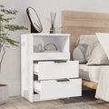 These bedside cabinets with an elegant design make a timeless addition to your interior decor. Premium material: The engineered wood is of exceptional quality with smooth surface and also features strength, stability and resistance to moisture. Made of engineered wood, the nightstand is easy to clean with a damp cloth.Ample storage space: Equipped with 2 drawers and 1 compartment, this bedside table offers handy storage space for keeping your magazines, books, remote controls and other small items well organised and within reach.Stable top: The stable top can be used to place decorative items like photo frames and potted plants. Warning:In order to prevent overturning, this product must be used with the wall attachment device provided.