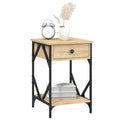 This trendy bedside cabinet, featuring an industrial style, is designed to upgrade your interior to the next level. Durable material: The engineered wood is of exceptional quality with a smooth surface and also features strength, stability, and resistance to moisture.Stable frame: The diamond-shaped iron frame and adjustable feet offer sturdiness and stability for the side table.Ample storage space: Featuring a smooth tabletop, a pull-out drawer with a front knob, and a spacious open shelf, the bedside table helps organize your books, TV accessories, glasses, and coffee cups within your arm's reach.Multifunctional design: This industrial-style cabinet is ideal to serve as a nightstand next to your bed, an end table next to the couch in the living room, or as an additional shelf in the study. Warning:In order to prevent overturning, this product must be used with the wall attachment device provided.