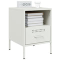These sturdy bedside cabinets with an industrial style makes a timeless addition to your living room or bedroom. Stable material: The cabinet's frame is made of cold-rolled steel. Cold-rolled steel is a kind of low-carbon steel produced by a "cold rolling" method and processed at near normal room temperatures. Cold-rolled steel has a smoother surface, greater strength, and higher precision.Ample storage space: This bedside table provides ample storage space for keeping your magazines, books, DVDs, remote control and other small items well-organised and within reach.Adjustable screw feet: This side cabinet is equipped with four adjustable screw feet to compensate for uneven floors, ensuring stability and balance.Easy to clean: The metal cabinet is easy to clean with a damp cloth and requires less maintenance. Warning:To prevent it from tipping over, this product must be used with the provided wall attachment device.