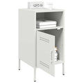 These sturdy bedside cabinets with an industrial style makes a timeless addition to your living room or bedroom. Stable material: The cabinet's frame is made of cold-rolled steel. Cold-rolled steel is a kind of low-carbon steel produced by a "cold rolling" method and processed at near normal room temperatures. Cold-rolled steel has a smoother surface, greater strength, and higher precision.Ample storage space: This bedside table provides ample storage space for keeping your magazines, books, DVDs, remote control and other small items well-organised and within reach.Adjustable screw feet: This side cabinet is equipped with four adjustable screw feet to compensate for uneven floors, ensuring stability and balance.Practical door: The door helps maintain a clean and organised space by concealing small essentials and clutter behind them.Easy to clean: The metal cabinet is easy to clean with a damp cloth and requires less maintenance. Warning:To prevent it from tipping over, this product must be used with the provided wall attachment device.