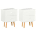 Add a touch of Scandinavian style to your home decor with our stylish wooden bedside cabinets! They will definitely make a practical as well as decorative addition to your bedroom. The tabletop is ideal for placing an alarm clock, a reading lamp, books, or for displaying photo frames and other small decorative items, while the 2 drawers provide ample space for keeping all kinds of smaller items like keys, notepads, pens, as well as various other knick-knacks organised and within reach. Made of MDF and solid pinewood, this telephone stands are exceedingly stable and durable. The bedside tables are easy to assemble. Delivery includes 2 bedside cabinets.