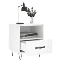 Introduce an air of modern charm to your interior with these bedside cabinets! Durable material: The engineered wood is of exceptional quality with smooth surface and also features strength, stability and resistance to moisture. Spacious storage space: The bedside cabinet has a compartment and a drawer, providing spacious storage space to keep your books, multimedia appliances and other items within reach. Displaying function: You can also place your favourite photos, decorations or flowers on top of the side cabinet to enrich your life. Metal feet: The metal feet add a calm style to your interior while ensuring stability.