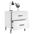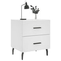 Introduce an air of modern charm to your interior with these bedside cabinets! Durable material: The engineered wood is of exceptional quality with smooth surface and also features strength, stability and resistance to moisture. Spacious storage: The bedside cabinet has drawers, providing spacious storage space to keep your books, multimedia appliances and other items within reach.Displaying function: You can also place your favourite photos, decorations or flowers on top of the side cabinet to enrich your life. Metal feet: The metal feet add a calm style to your interior while ensuring stability.