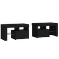 Anchor your living space in contemporary charm with these elegant bedside cabinets! Featuring a trendy yet practical design, these bedside cabinets with LED lights definitely become a focal point of your room. Durable material: The engineered wood is of exceptional quality with smooth surface and also features strength, stability and resistance to moisture. Colorful LED lights: The cabinet features RGB LED lights, which has different menus to change the colour of lights and let the colour adjust automatically differently. The LED lights underline the modern look and contribute to the trendy feeling.Ample storage space: The bedside table provides plenty of storage space for keeping your magazines, books, remote controls and other small items well-organised and within easy reach.Displaying function: The sturdy top of side cabinet is ideal for displaying decorative objects, photo frames, or potted plants. Note:The product has a USB connector, but the certified 5V USB power source is not included.Each product comes with an assembly manual in the box for easy assembly.