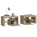 Anchor your living space in contemporary charm with these elegant bedside cabinets! Featuring a trendy yet practical design, these bedside cabinets with LED lights definitely become a focal point of your room. Durable material: The engineered wood is of exceptional quality with smooth surface and also features strength, stability and resistance to moisture. Colorful LED lights: The cabinet features RGB LED lights, which has different menus to change the colour of lights and let the colour adjust automatically differently. The LED lights underline the modern look and contribute to the trendy feeling.Ample storage space: The bedside table provides plenty of storage space for keeping your magazines, books, remote controls and other small items well-organised and within easy reach.Displaying function: The sturdy top of side cabinet is ideal for displaying decorative objects, photo frames, or potted plants. Note:The product has a USB connector, but the certified 5V USB power source is not included.Each product comes with an assembly manual in the box for easy assembly.