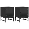 These trendy bedside cabinets featuring an elegant design make a timeless addition to your interior decor. Durable material: The engineered wood is of exceptional quality with smooth surface and also features strength, stability and resistance to moisture.Ample storage space: These bedside tables offer handy storage space for keeping your magazines, remote controls and small items well-organised and within reach.Stable top: The side cabinets feature a stable top that can be used to place table lamps, books, etc.Practical glass doors: Keep your space clutter-free by hiding small essentials behind the doors of bedroom furniture. In addition, these glass doors allow you to see inside the bed side cabinets to display items beautifully.