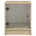 These trendy bedside cabinets featuring an elegant design make a timeless addition to your interior decor. Durable material: The engineered wood is of exceptional quality with smooth surface and also features strength, stability and resistance to moisture.Ample storage space: These bedside tables offer handy storage space for keeping your magazines, remote controls and small items well-organised and within reach.Stable top: The side cabinets feature a stable top that can be used to place table lamps, books, etc.Practical glass doors: Keep your space clutter-free by hiding small essentials behind the doors of bedroom furniture. In addition, these glass doors allow you to see inside the bed side cabinets to display items beautifully.