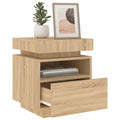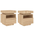 Featuring a trendy yet practical design, these bedside cabinets with LED lights will definitely become a focal point of your room. Durable material: The engineered wood is of exceptional quality with smooth surface and also features strength, stability and resistance to moisture.RGB LED lights: These bed side cabinets feature RGB LED lights, which have different menus to change the colour of lights and let the colour adjust automatically.Ample storage space: These bedside tables offer handy storage space for keeping your magazines, remote controls and your small items well organised and within reach.Displaying function: The sturdy tops of these media cabinets are ideal for displaying decorative objects, photo frames, or potted plants. Good to know:The product has a USB connector, but the certified 5V USB power source is not included.