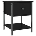 This bedside table with an elegant design makes a timeless addition to your interior decor. Durable material: The engineered wood is of exceptional quality with smooth surface and also features strength, stability and resistance to moisture. Sturdy frame: The metal frame ensures sturdiness and stability.Ample storage space: The side table offers ample storage space for keeping your various daily essentials well organised and within easy reach. Displaying function: You can also place your favourite photos, decorations, or flowers on top of the bedside cabinet to enrich your life.Adjustable feet: Four adjustable feet with plastic pads keep the side cabinet balanced on uneven ground and increase stability.