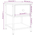This bedside table with an elegant design makes a timeless addition to your interior decor. Durable material: The engineered wood is of exceptional quality with smooth surface and also features strength, stability and resistance to moisture. Sturdy frame: The metal frame ensures sturdiness and stability.Ample storage space: The side table offers ample storage space for keeping your various daily essentials well organised and within easy reach. Displaying function: You can also place your favourite photos, decorations, or flowers on top of the bedside cabinet to enrich your life.Adjustable feet: Four adjustable feet with plastic pads keep the side cabinet balanced on uneven ground and increase stability.