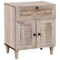 The Solid Wood Bedside Table blends rustic style with function, making it perfect for any living or bedroom. Made from solid mango wood, this little nightstand proudly shows off its natural ruggedness, blending modern and timeless looks. It’s the perfect spot for your lamp, alarm clock, or personal things. With its smooth rectangular top, it fits right in with your decor, providing a handy storage solution that looks great. Materials: Built from solid mango wood, this bedside table is durable and adds a natural touch. The wood's smooth texture highlights its beauty, making it a strong addition to your home. It’s built to last, ideal for those who appreciate both looks and sturdiness. Plus, it’s easy to keep clean and cope with daily use. Included Components: The bedside table comes with a solid wood door to keep your stuff private. It also has a smooth drawer made from the same quality mango wood for secure storage. The matte finished handles are stylish and easy to grip. These thoughtful design choices really enhance your user experience, combining style and function. Features / Function / Design: This piece features a rustic design with a vintage twist, highlighted by its graceful tapered legs. With a matte finish, it combines comfort and elegance, making it versatile for any setting. The blend of practical features and style makes it a great addition for comfortable living. Recommended Uses: Suitable for living rooms and bedrooms, this table fits into a range of styles. Whether it’s next to a comfy armchair or between chairs, it offers plenty of styling and storage options. It caters to various decor themes, reflecting modern or classic aesthetics. Care & Maintenance: Keep it looking great by simply wiping it down with a dry cloth and avoiding harsh chemicals. This way, you help maintain its beautiful finish. Easy care helps it stay in top condition over time, ensuring it remains a useful part of your home.