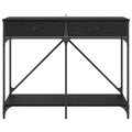 The Industrial Console Table is a versatile and stylish addition to your living space, seamlessly blending rustic charm with modern functionality. Crafted for those who appreciate natural beauty and robust utility, this console table offers a sophisticated focal point for any room. It is designed to provide both display opportunities and ample storage, making it an ideal piece for hallways, entryways, or living rooms. Its inviting matte texture complements a variety of interior styles, from traditional rustic aesthetics to contemporary urban settings. Perfect for displaying your favorite decorative pieces or keeping daily essentials organized, this console table becomes an essential part of your home decor. Durable Engineered Wood The table surface, shelf backing, and drawer components are constructed from engineered wood, providing a robust, stain-resistant finish that is perfect for daily use. This material offers a reliable surface that withstands spills and stains, ensuring the table retains its pristine look over time and maintains its place as a staple in your living space. Matte Metal Frame Supporting this console is a solid metal frame with a non-reflective matte finish. The frame's robust construction ensures long-lasting stability and support, while its understated finish adds a touch of sophistication to complement any room decor. Whether positioned in your hallway or living room, the durable metal legs provide the assurance of steadiness and strength. Ample Display Shelving This console table features spacious board shelves, delivering a straightforward shelving solution for your decorative items, books, and more. These shelves offer versatility, allowing you to create your desired display setup with ease while ensuring items are organized and within reach. User-Friendly Drawers Equipped with traditional pull drawers, this table provides accessible storage for your essential items. The drawers open smoothly with knobs for ease of use, keeping your belongings secure yet readily accessible whenever needed. These functional drawers enhance the practicality of the table, offering convenience in a stylish package. Easy Care Maintenance Maintain the table's beauty by simply cleaning it with a damp cloth to keep it dust-free and attractive. The wood's resilient nature aids in quick cleanup, allowing you to focus on the elegance it brings to your space without hassle.