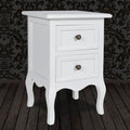 This white nightstand with two drawers will add a touch of style to your bedroom. The painted wood body is solid and perfect for storing and displaying your bedtime essentials, to help keep your room tidy.Since this furniture is hand-crafted, made of wood and painted white, it may come with small imperfections.