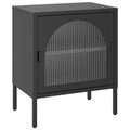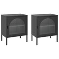 These nightstands with a stylish design make a timeless addition to your interior decor. Stable material: These bedside cabinets' frame is made of powder-coated steel. Steel is an exceptionally hard and strong material. It offers sturdiness and stability. The powder coating on steel creates a protective layer against wear and tear.Fluted glass: Fluted glass features a vertical texture pattern and is able to create a hazy feel using embossing, allowing transparency and privacy to co-exist.Ample storage space: These cabinets offer handy storage spaces for keeping your magazines, books, remote controls and other small items well-organised and within reach.Adjustable shelf: Each bedside table is equipped with 1 adjustable shelf that can meet items of different heights and sizes and avoid wasting space.Levellers on the bottom: There are levellers on the bottom to stabilize the cabinets when standing on uneven floors.Stable top: The stable tops of the side cabinets are ideal for your favourite decorative items like vases and potted plants. Warning:To prevent it being overturned, this product must be used with the provided wall attachment device.