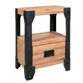 This cool, industrial nightstand will make a great addition to your bedroom decor. It's made of high-quality, solid brushed acacia wood with black steel details for a look that's completely in keeping with the industrial style that's all the rage right now. The sturdy top is ideal for keeping an alarm clock, a reading lamp, books, etc., or for displaying photo frames or other decorative items. The drawer and shelf provide space for keeping all kinds of smaller items organised and within reach. The handy pull makes it easier to open the drawer and adds to the nightstand's industrial look and feel. Note: The nightstand is already assembled; no assembly is required. Delivery includes 2 nightstands